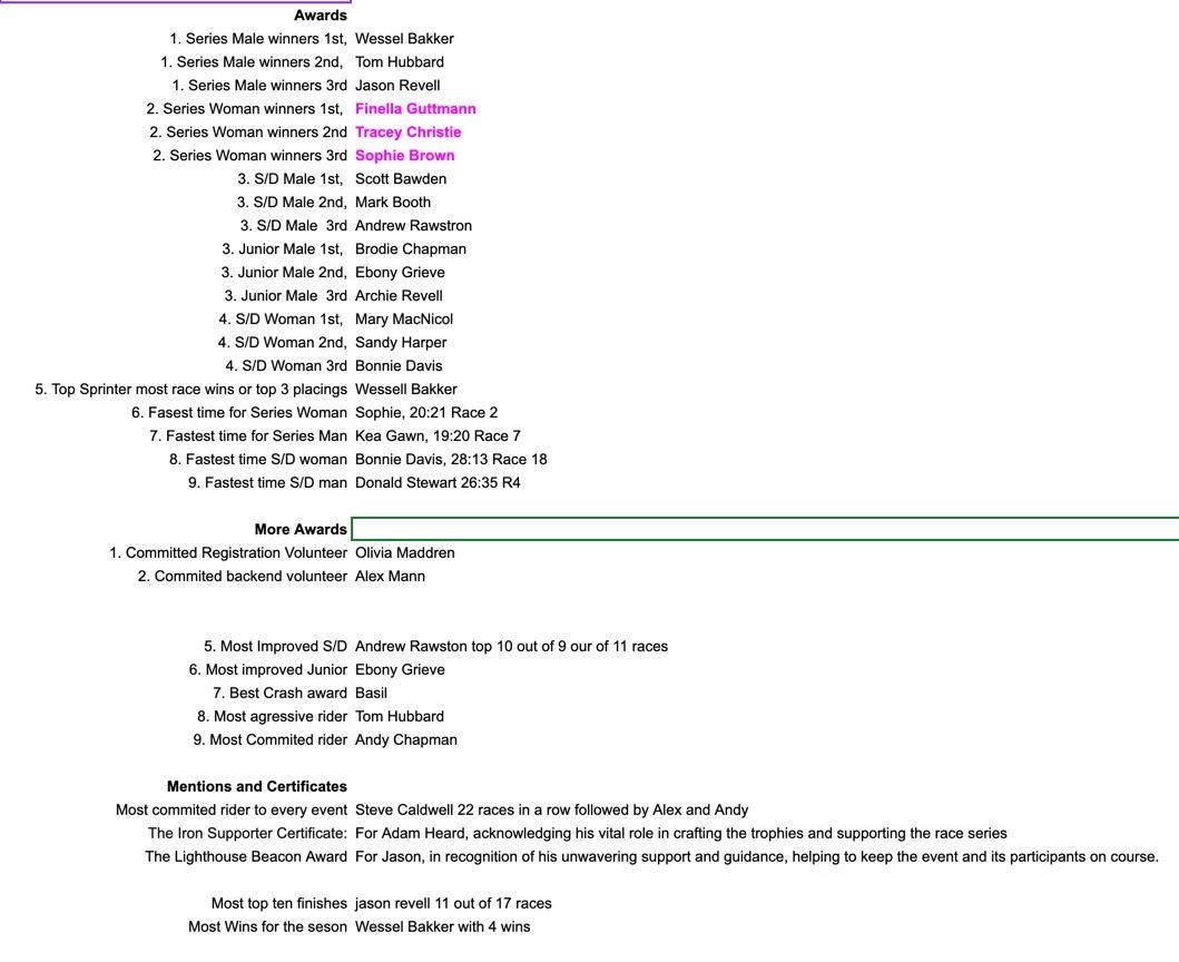 And, of course, we had our fun awards! š Who could forget Tom Hubbard's aggressive riding or Andy Chapman's unwavering commitment?